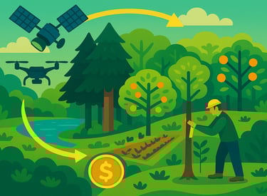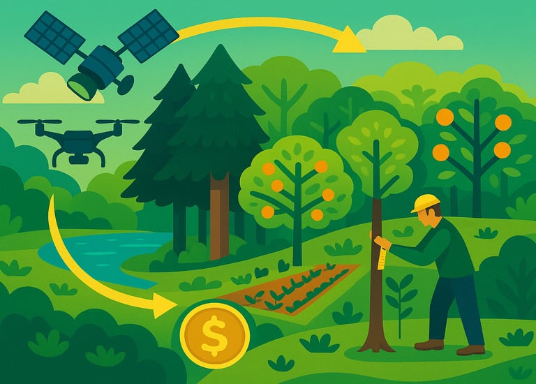 Earn tradable credits by conserving forest, planting idle land, or integrating trees with crops. After a quick satellite‑based eligibility check, our field team maps boundaries, measures biomass and soil carbon, and records biodiversity co‑benefits. We model carbon yields, design site‑specific practices (agroforestry, reduced tillage, fertiliser efficiency), and prepare submissions for Verra, Gold Standard, or other registries. Drones, satellites, and ground surveys support monitoring; we steer you through third‑party verification, credit issuance, and brokerage. Engage us for single steps—eligibility, mapping, data analysis, reporting—or turnkey concept‑to‑sale delivery.
