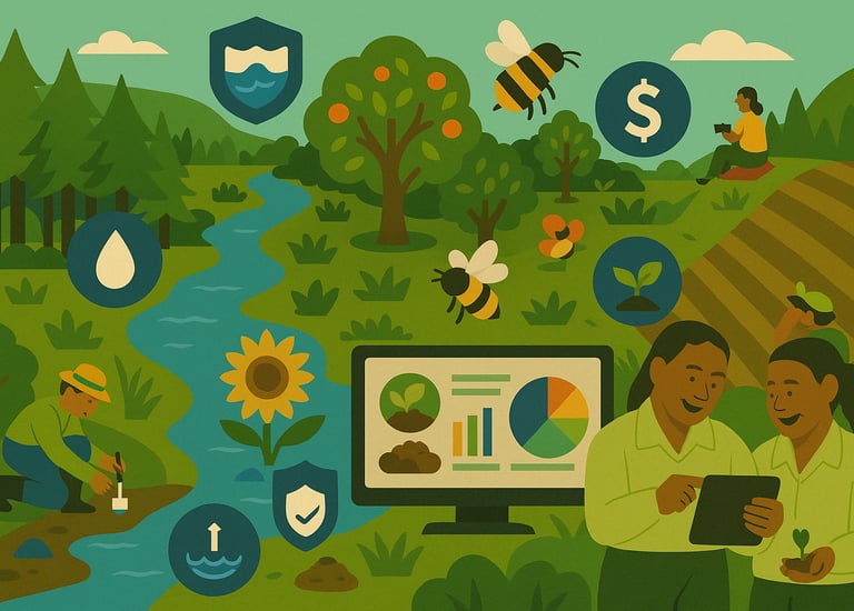 Plantations and nature‑based projects gain greater value when their ecosystem services are quantified. Field data, InVEST models, and GIS mapping reveal carbon storage, water filtration, pollination, pest control, erosion control, and cultural benefits. Benefit‑transfer economics converts functions to monetary terms, feeding Natural Capital Accounts, ESG statements, TNFD reports, or investor decks. Select individual tasks—data collection, modelling, valuation—or commission an end‑to‑end study with scenario testing and live dashboards.