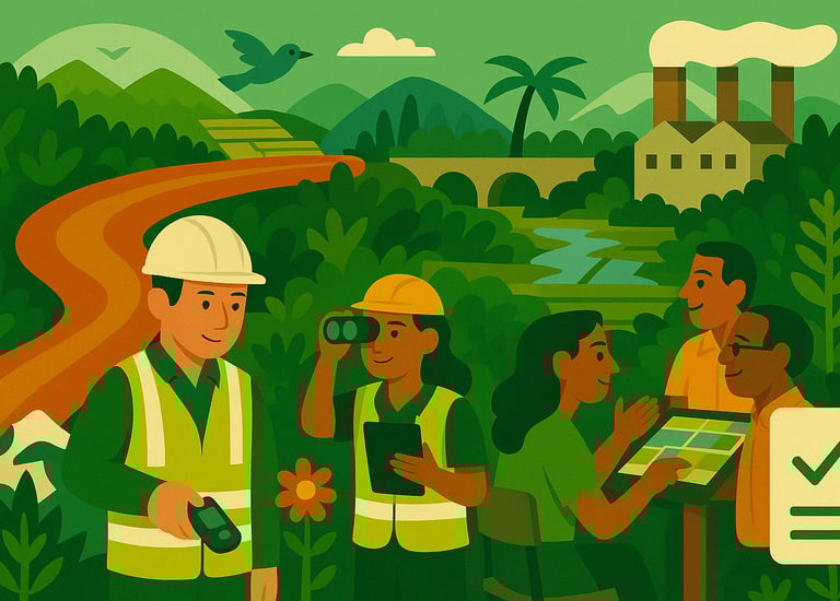 For roads, rail, bridges, cement works, power plants, and similar projects, we deliver IFC‑aligned ESIAs that satisfy national regulators. Specialists in ecology, hydrology, air quality, and socio‑economics conduct baseline surveys, consult communities and landowners, and analyse high‑resolution imagery to flag habitats, wetlands, and wildlife corridors. Quantitative models forecast noise, dust, emissions, and runoff. Results arrive in an executive report detailing mitigation, offsets, and compliance duties. Choose discrete services—baseline mapping, stakeholder engagement, monitoring—or a full ESIA through approval and post‑construction audits.
